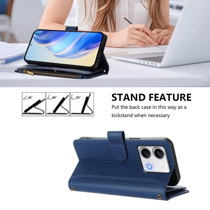 For Redmi Note 13 5G Magnetic Closure 9 Card Slots Zipper Leather Case with Hand Strap(Dark Blue)