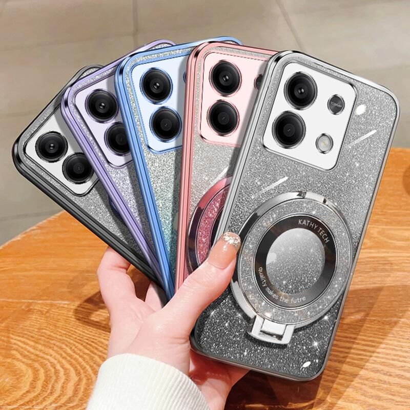 Για Redmi Σημείωση 13 5G επιμεταλλωμένο διαβάθμιση Glitter στρογγυλή κάτοχος TPU τηλέφωνο υπόθεση (μωβ)