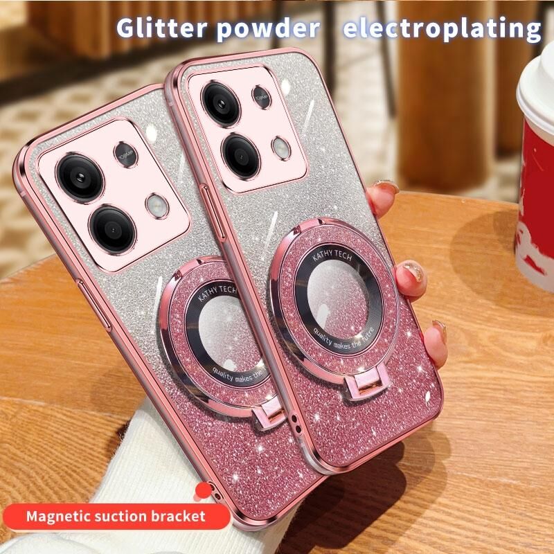 Για Redmi Σημείωση 13 5G επιμεταλλωμένο διαβάθμιση Glitter στρογγυλό κάτοχος TPU τηλέφωνο υπόθεση (Sierra Blue)