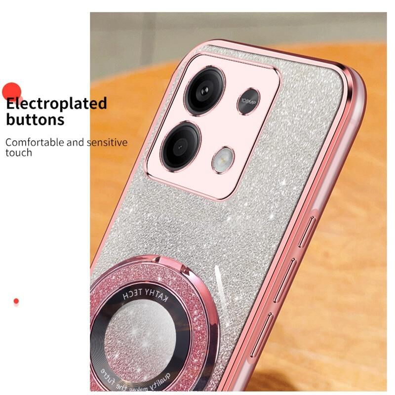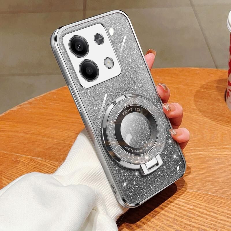 Για Redmi Σημείωση 13 5G επιμεταλλωμένο διαβάθμιση Glitter στρογγυλό κάτοχος TPU τηλέφωνο υπόθεση (ασημί)