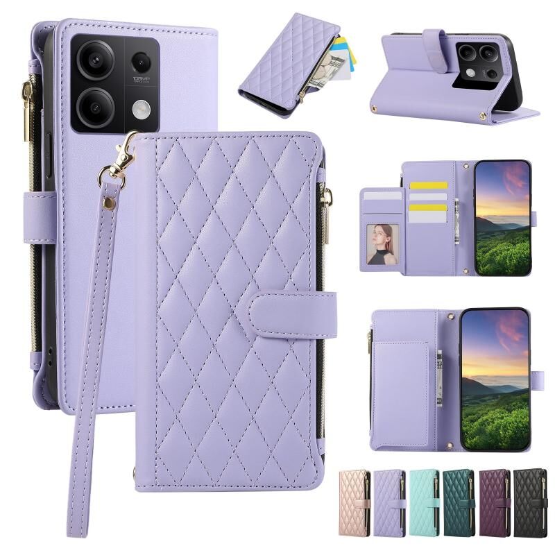 Για Redmi Note 13 5G Rhombic φερμουάρ πορτοφόλι δερμάτινη θήκη τηλεφώνου (μωβ)