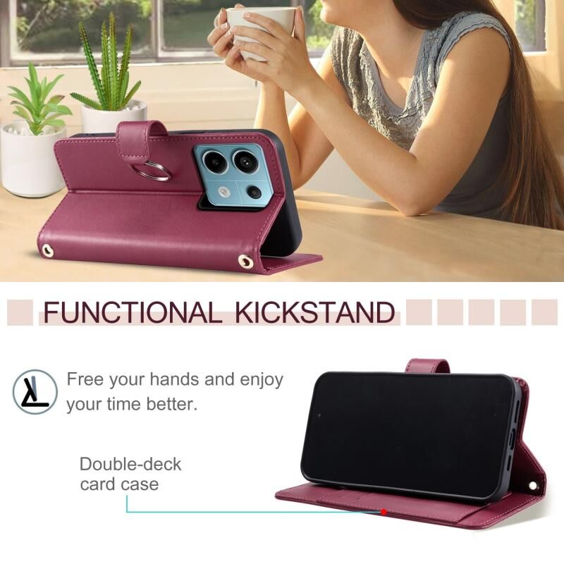 Για Redmi Note 13 5G δαχτυλίδι πόρπη Rhombic δερμάτινη θήκη τηλεφώνου (κόκκινο)