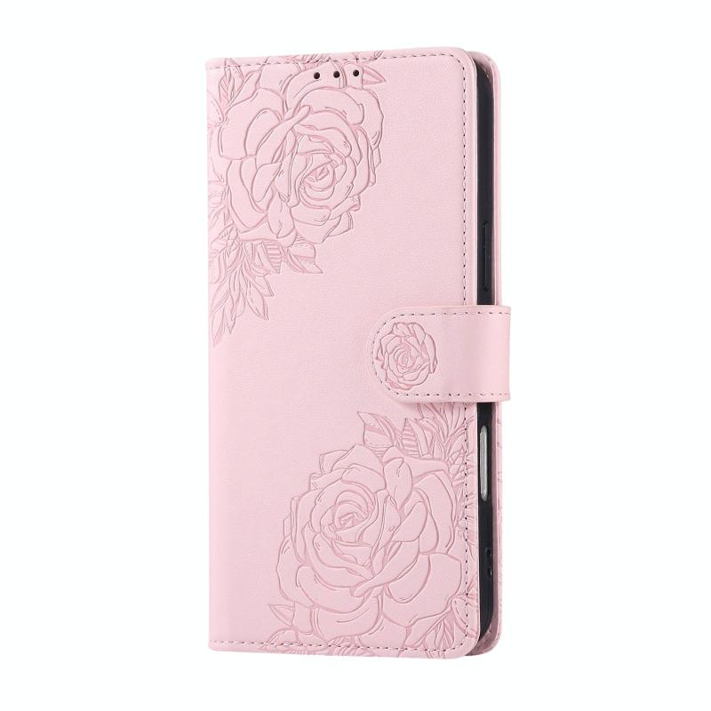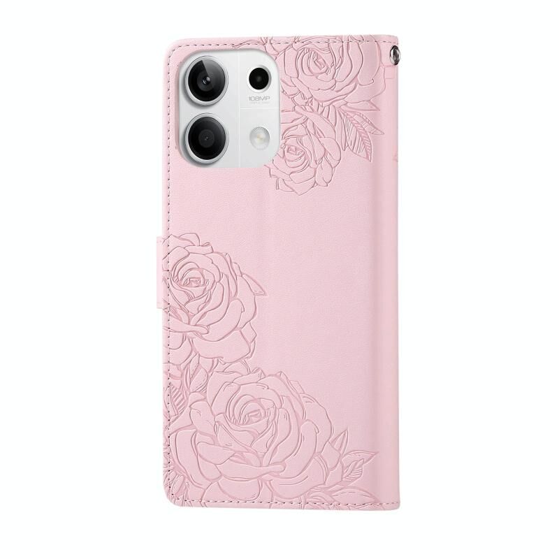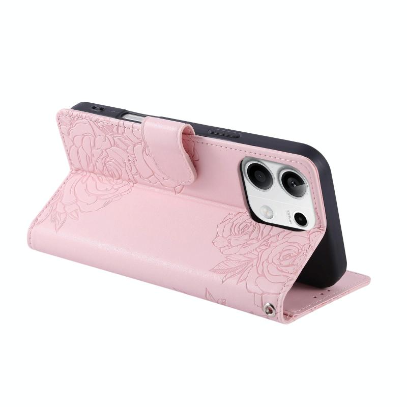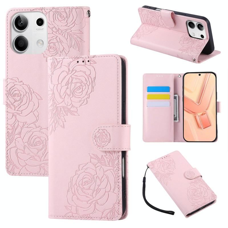For Redmi Note 13 5G Rose Flower Embossed 3-Card Slots Leather Phone Case(Pink)