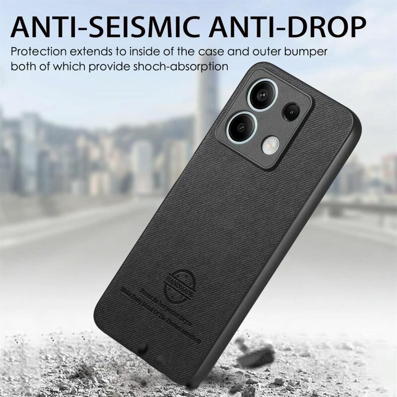Για Redmi Note 13 5G Θήκη κινητού τηλεφώνου από ύφασμα Twill και δέρμα (Μπλε)