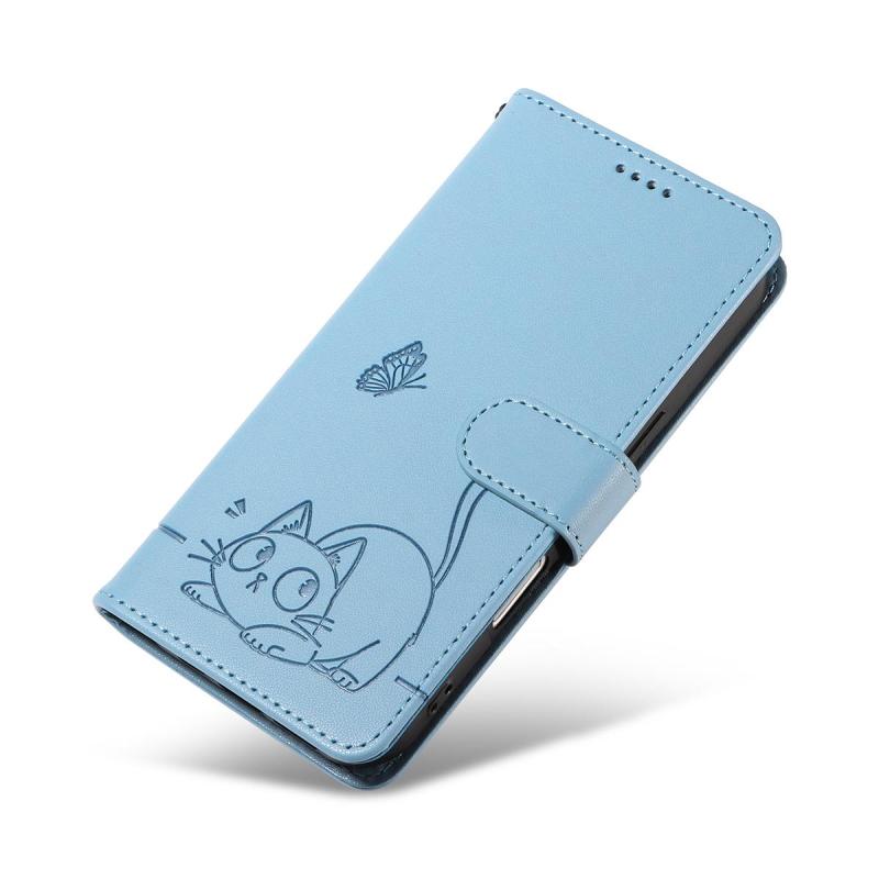 For Redmi Note 13 Pro 4G / 14S 4G Adorable Cat Embossed Pattern Flip Leather Phone Case(Sky Blue)