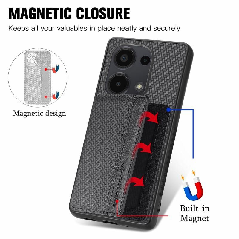 Για Redmi Σημείωση 13 Pro 4G Carbon Fiber Μαγνητική κάρτα τσάντα τηλέφωνο υπόθεση (μαύρο)
