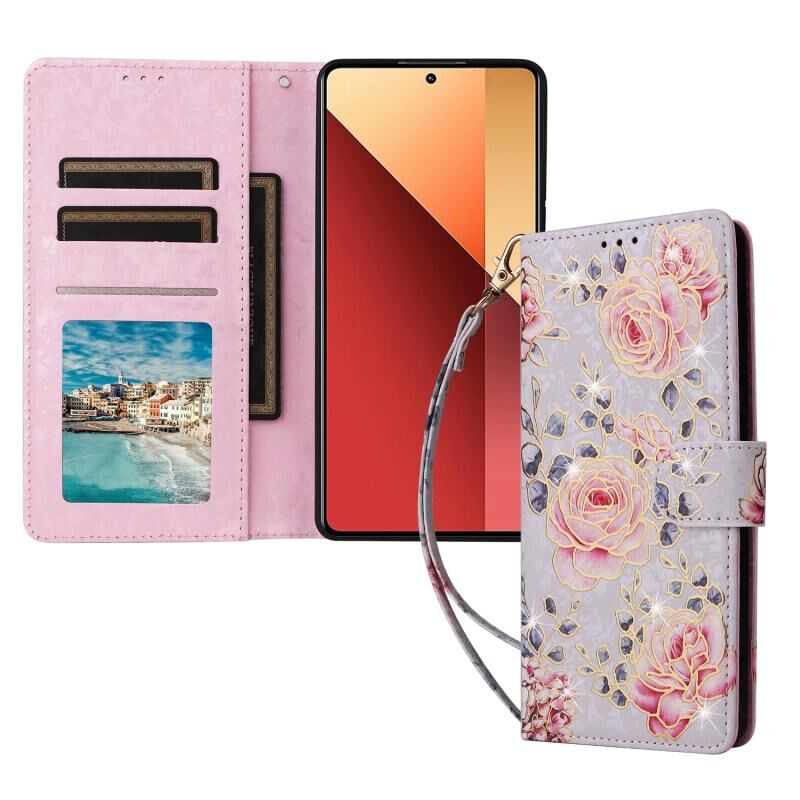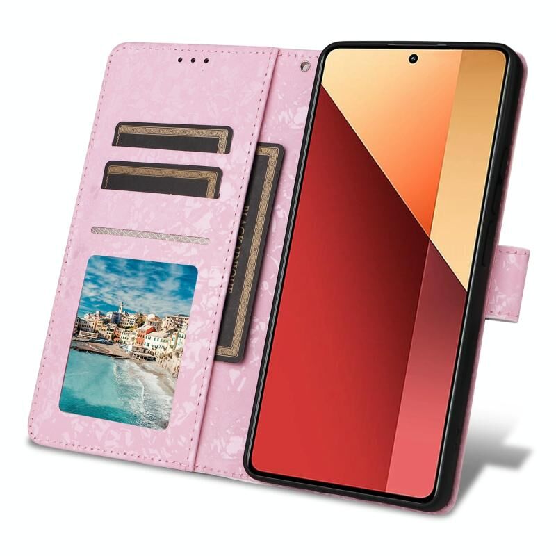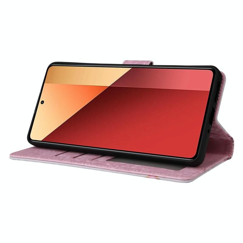 Θήκη τηλεφώνου από δέρμα RFID με ζωγραφική μπρονζέ για Redmi Note 13 Pro 4G Global (Ροζ Παστοράλ)
