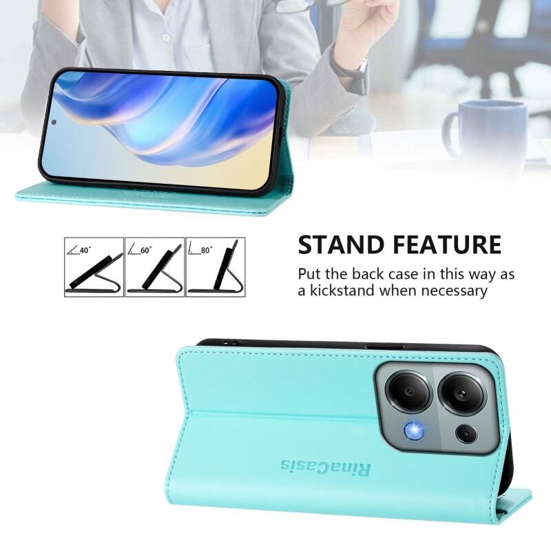Θήκη τηλεφώνου δερμάτινη με μαγνητική απορρόφηση και προστασία RFID για Redmi Note 13 Pro 4G Global RC01 (Μέντα Πράσινο)