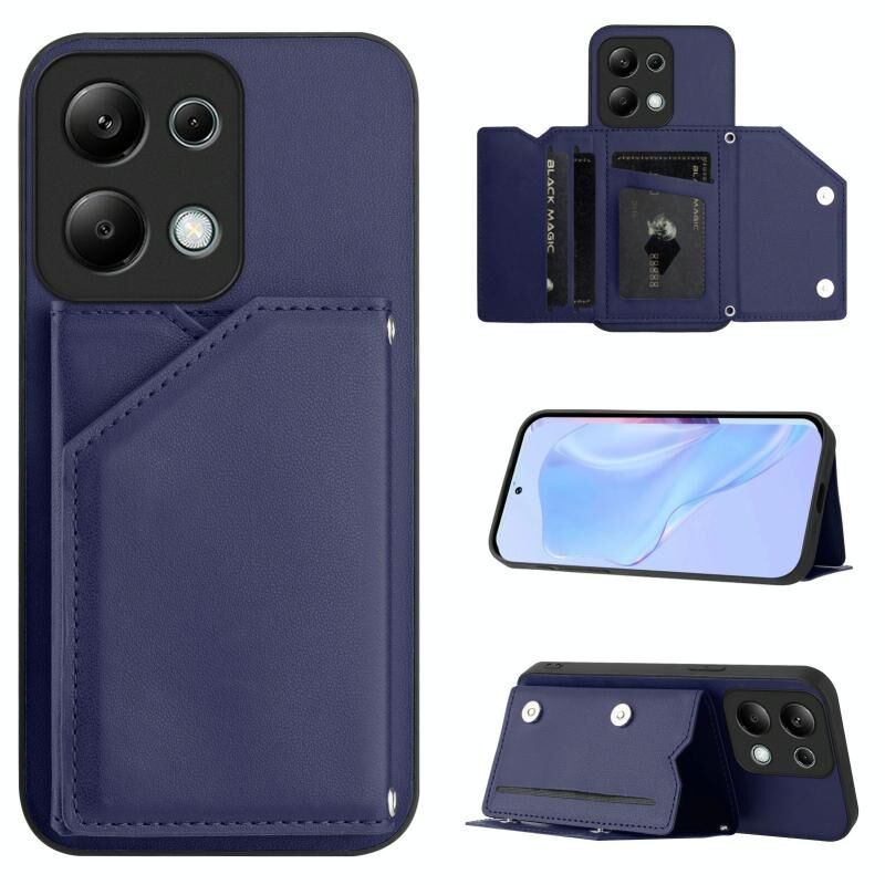 Για Redmi Note 13 Pro 4G Global Skin Feel Τέσσερις υποδοχές καρτών υπόθεση τηλεφώνου με λουράκι καρπού (μπλε)