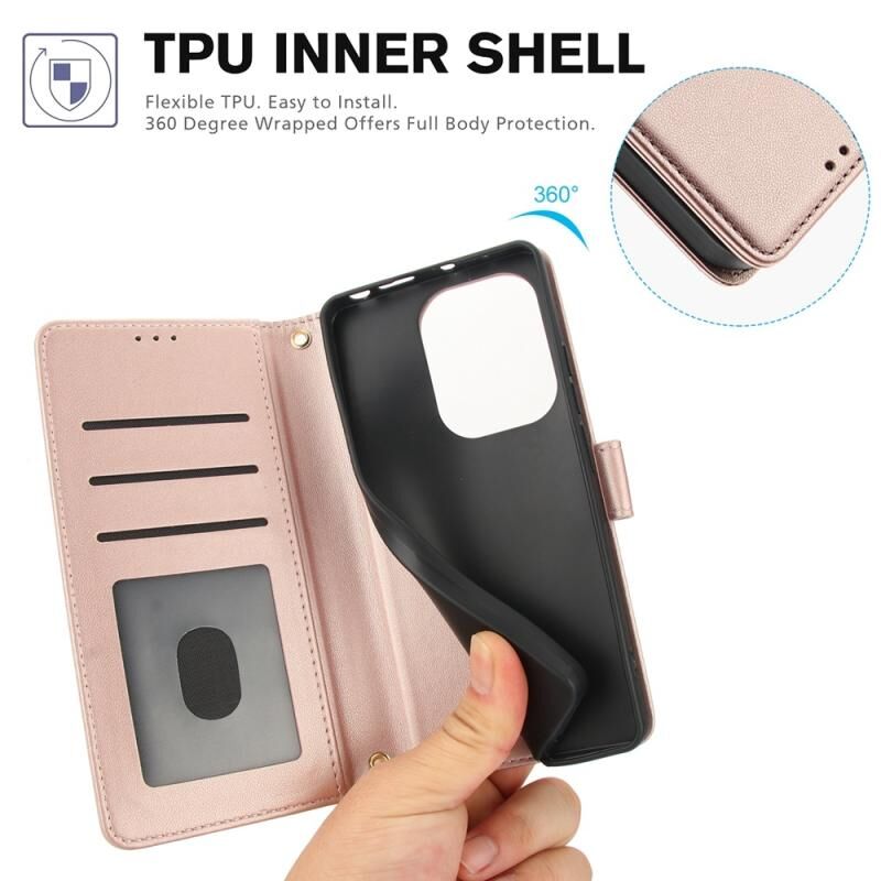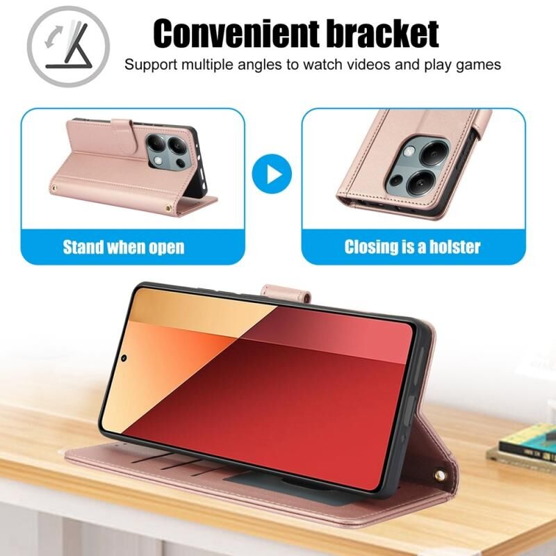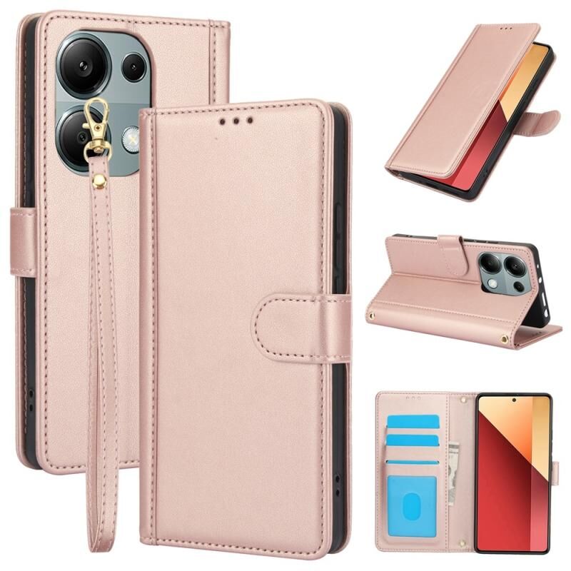 Για Redmi Note 13 Pro 4G Global Skin Feel Pure Color Card Slots δερμάτινη θήκη τηλεφώνου με διπλό κορδόνι (Rose Gold)