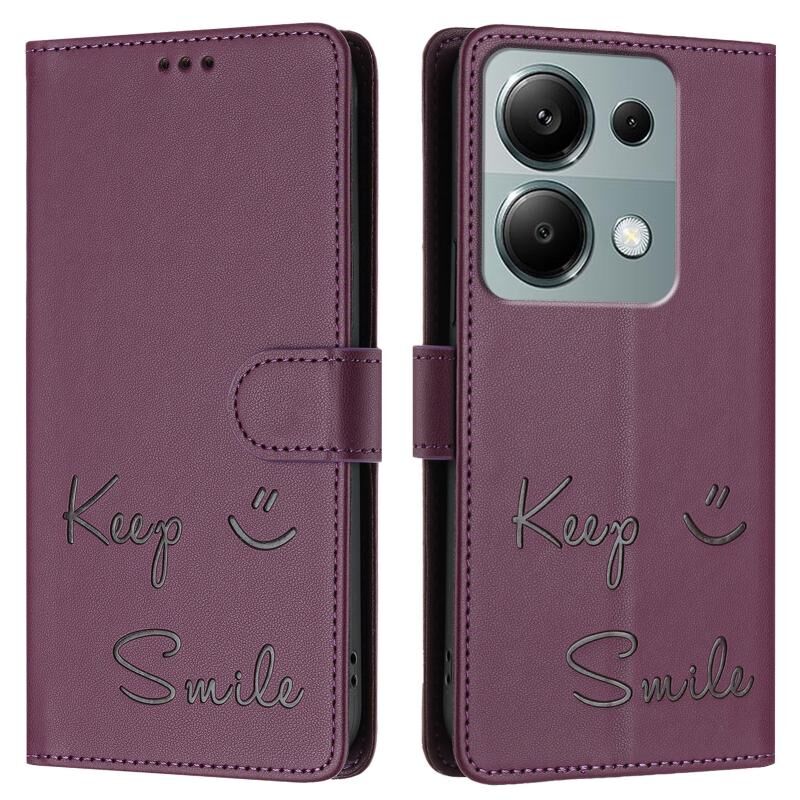 Για Redmi Σημείωση 13 Pro 4G Παγκόσμια χαμόγελο ανάγλυφο RFID δερμάτινη θήκη τηλεφώνου (Κόκκινο)