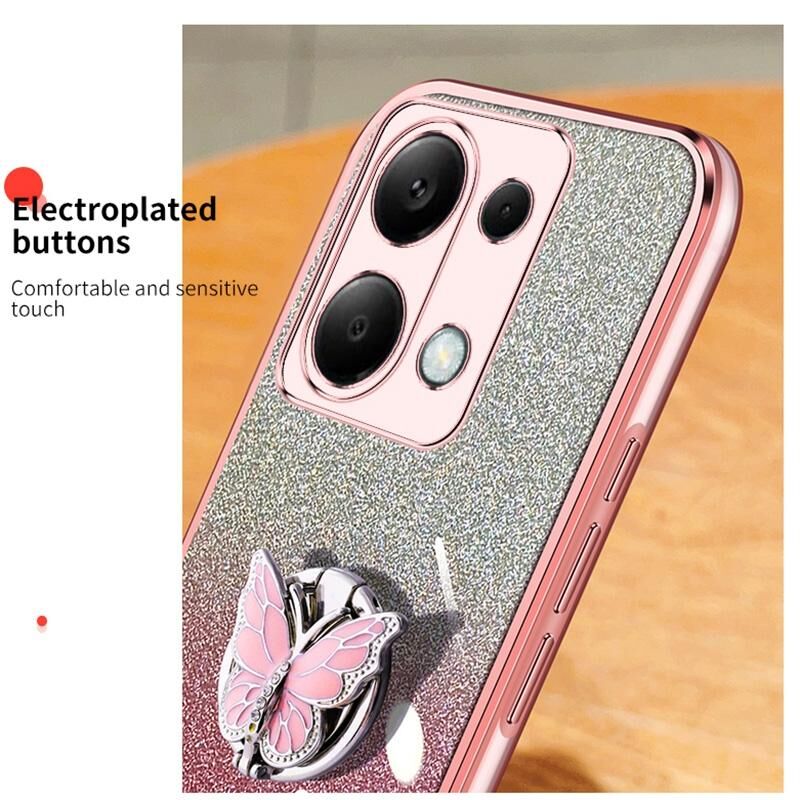 Για Redmi Note 13 Pro 4G επιμεταλλωμένο διαβάθμιση Glitter πεταλούδα κάτοχος TPU τηλέφωνο θήκη (Μωβ)