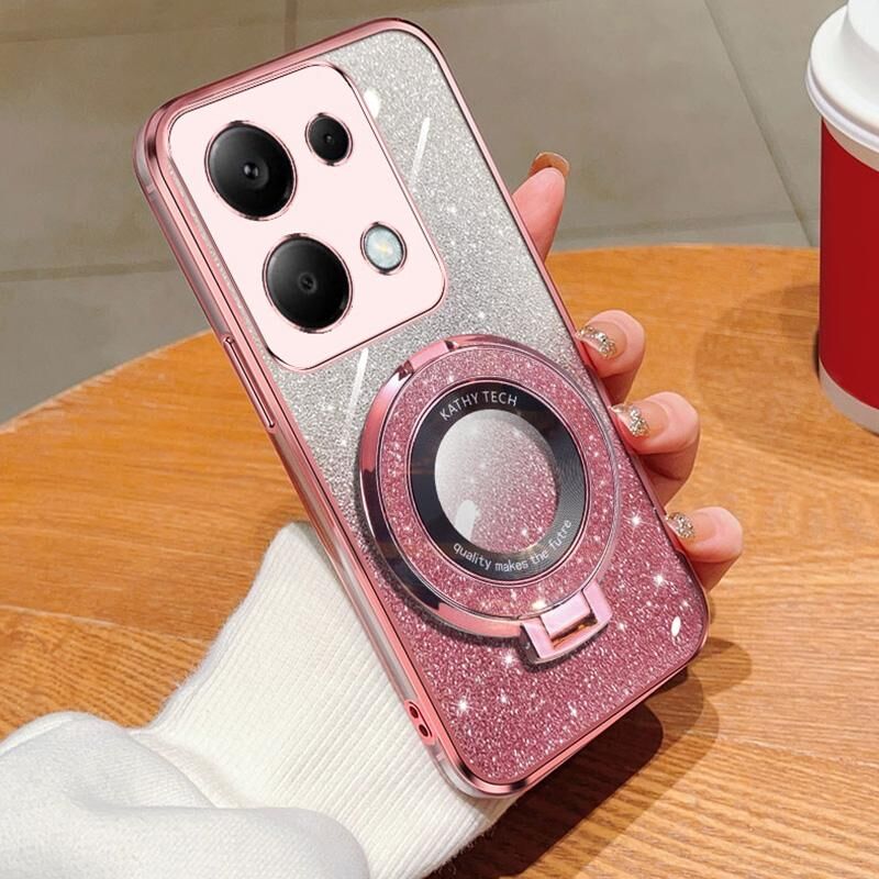 Για Redmi Note 13 Pro 4G επιμεταλλωμένο διαβάθμιση Glitter στρογγυλή κάτοχος TPU τηλέφωνο υπόθεση (ροζ)