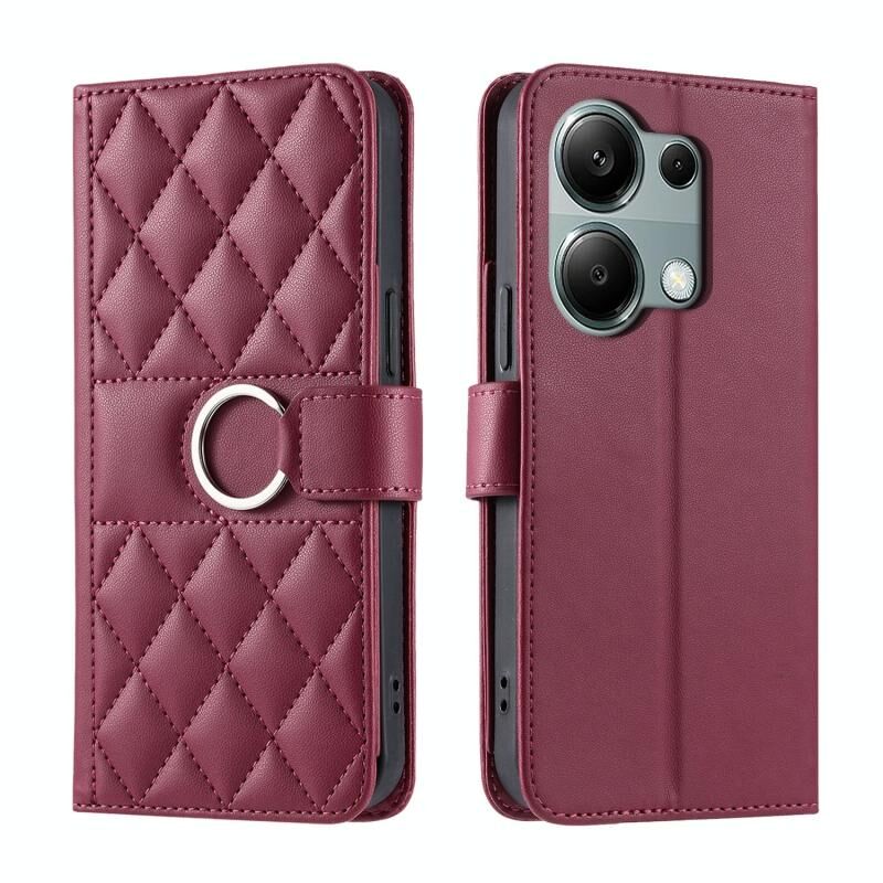Για Redmi Note 13 Pro 4G δαχτυλίδι πόρπη Rhombic δερμάτινη θήκη τηλεφώνου (Κόκκινο)