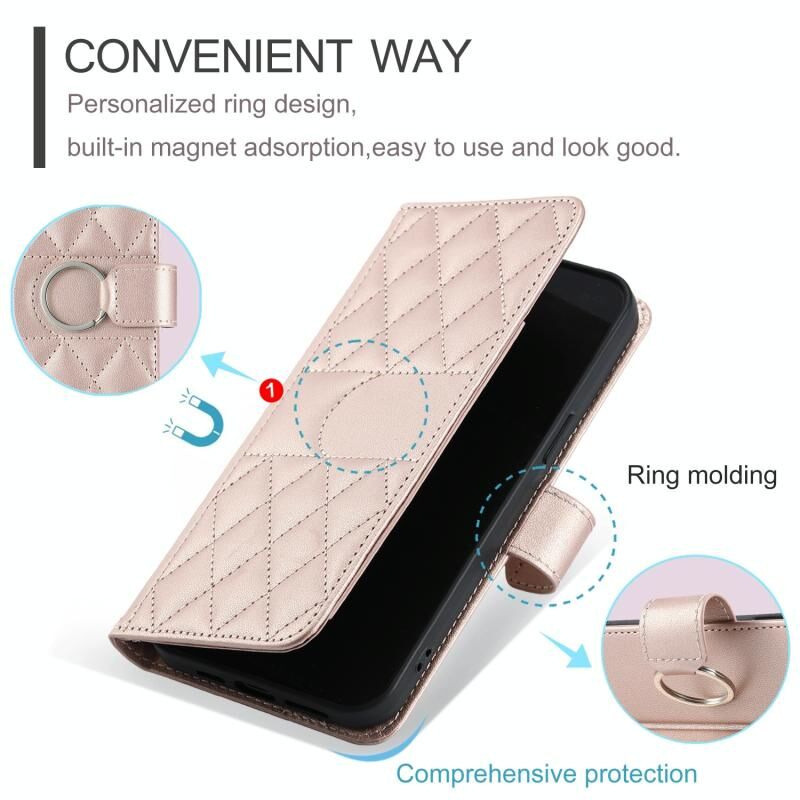 Για Redmi Note 13 Pro 4G δαχτυλίδι πόρπη Rhombic δέρμα τηλέφωνο υπόθεση (Ροζ χρυσός)