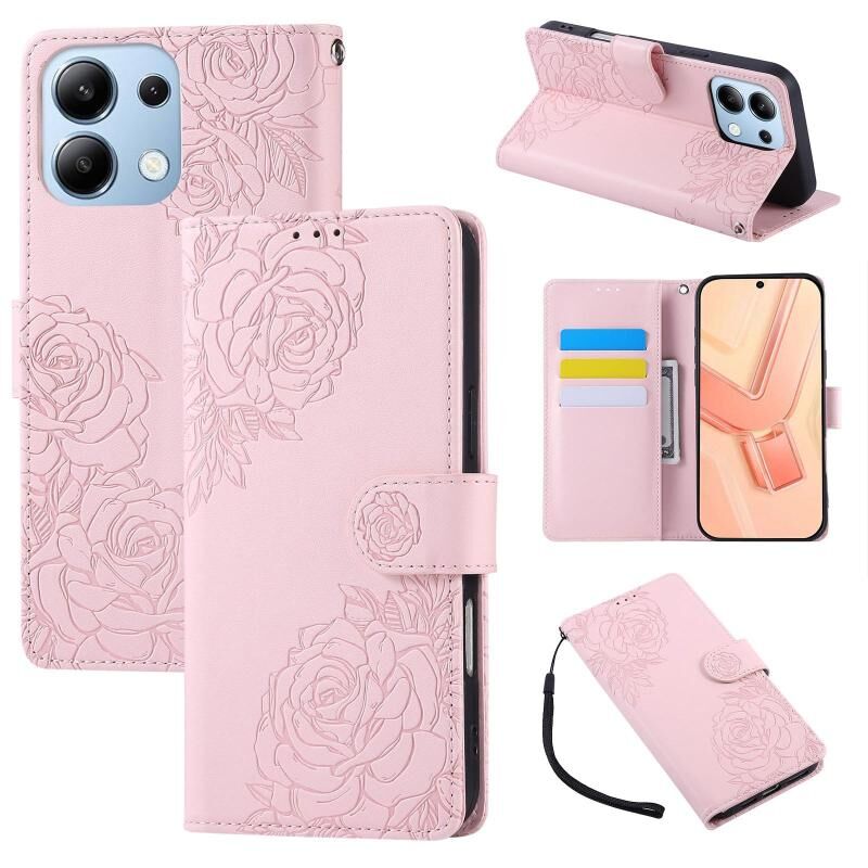 For Redmi Note 13 Pro 4G Rose Flower Embossed 3-Card Slots Leather Phone Case(Pink)