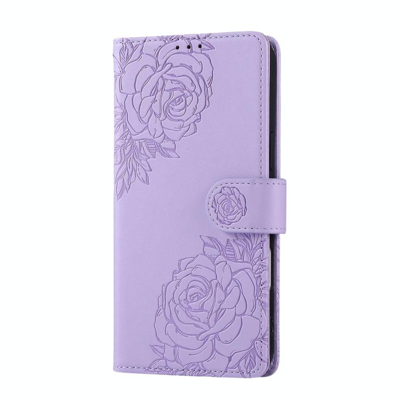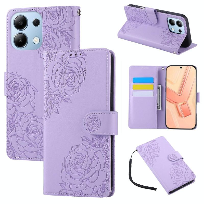 For Redmi Note 13 Pro 4G Rose Flower Embossed 3-Card Slots Leather Phone Case(Purple)