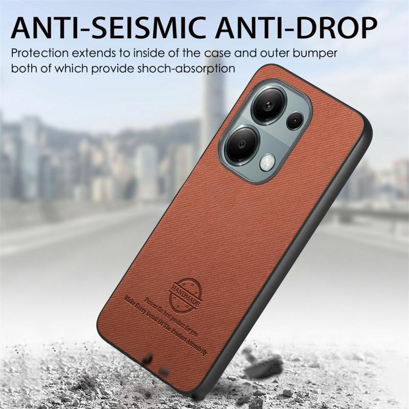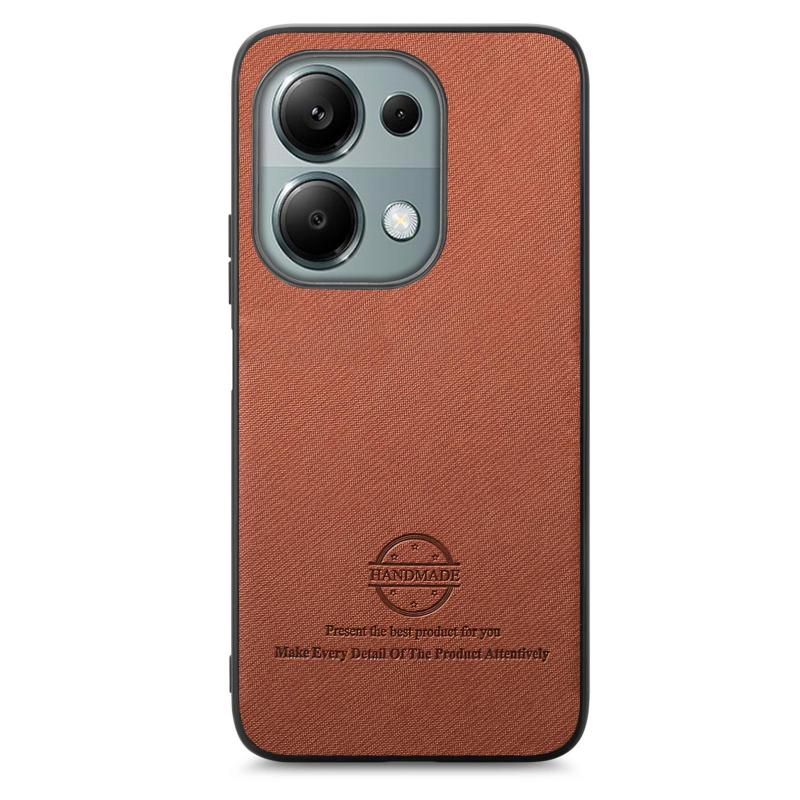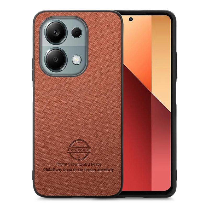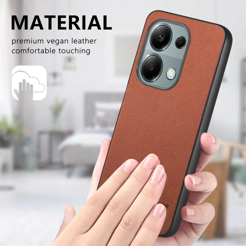 For Redmi Note 13 Pro 4G Twill Fabric Leather Skin Back Phone Case(Brown)