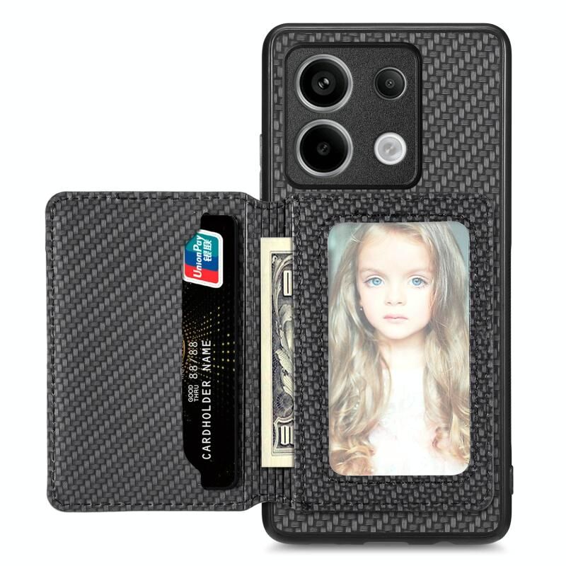 Για Redmi Σημείωση 13 Pro 5G ινών άνθρακα μαγνητική κάρτα τσάντα τηλέφωνο υπόθεση (Μαύρο)