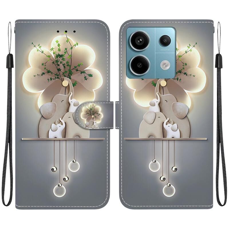 Θήκη τηλεφώνου από δέρμα με πολύχρωμη σχεδίαση κρυστάλλινης υφής για Redmi Note 13 Pro 5G (Ελέφαντες)