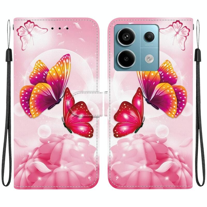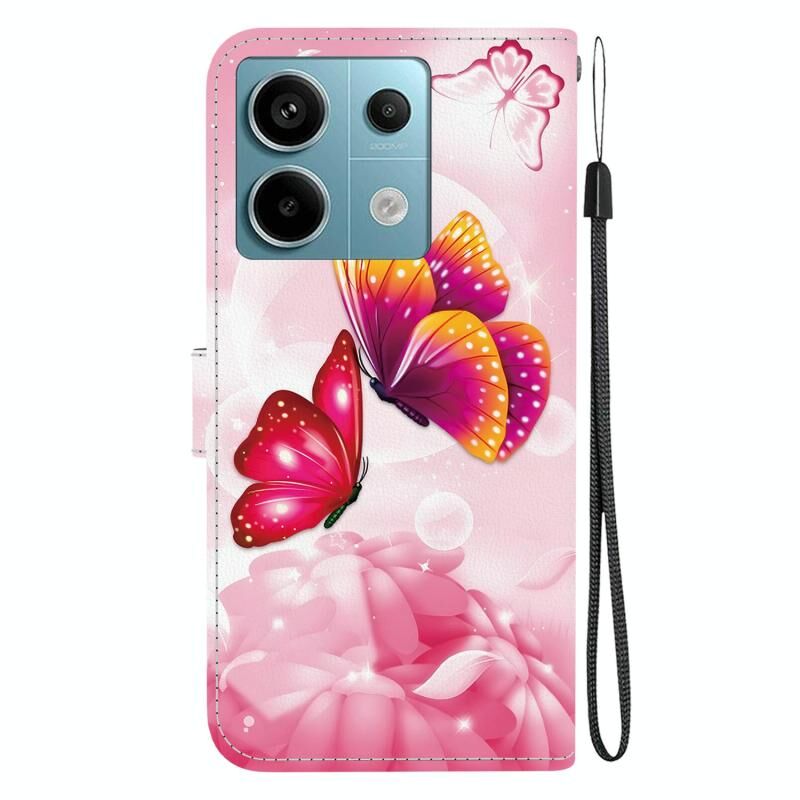 Θήκη τηλεφώνου από δέρμα με πολύχρωμη σχεδίαση κρυστάλλινης υφής για Redmi Note 13 Pro 5G (Χρυσά Φτερά Πεταλούδας)