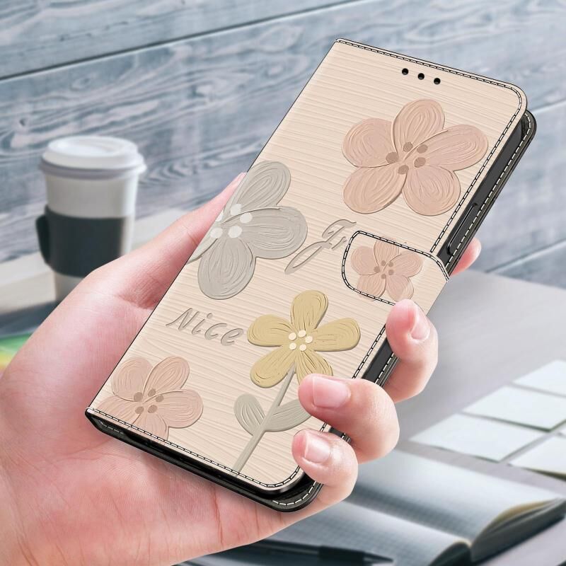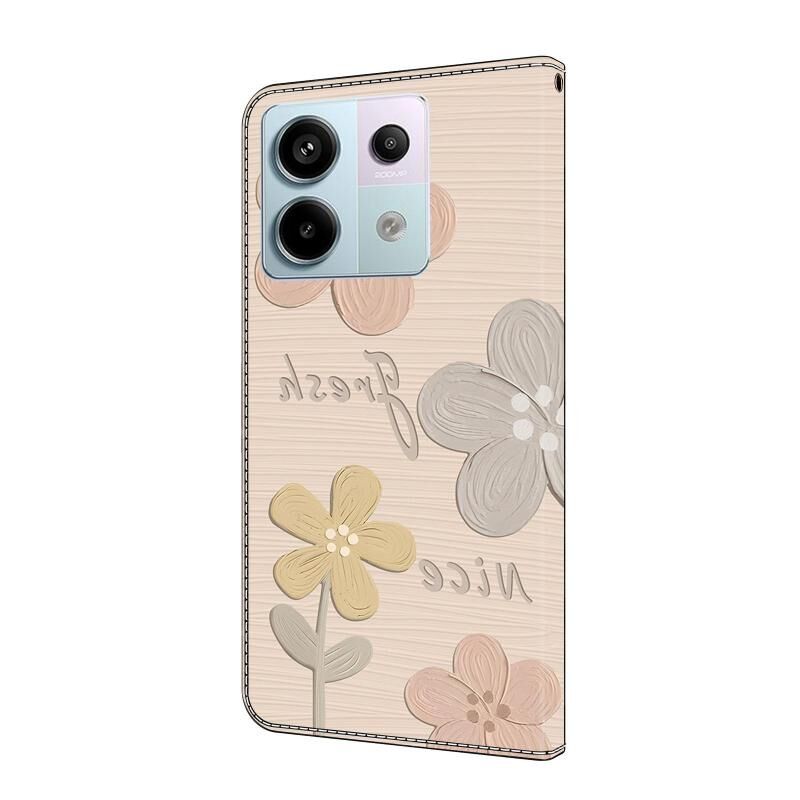 Θήκη τηλεφώνου από φρέσκο ​​βαμμένο δέρμα για Redmi Note 13 Pro 5G (Μπεζ Λουλούδια)
