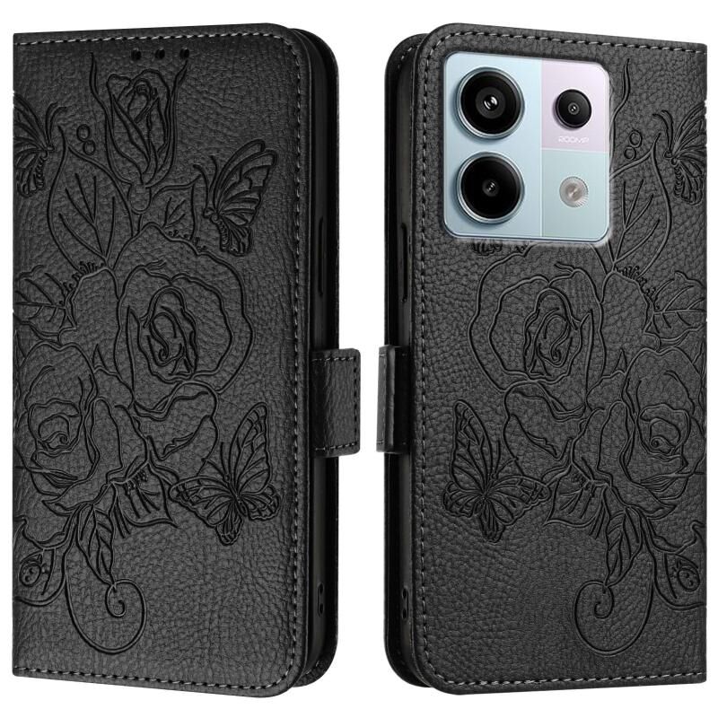Για Redmi Σημείωση 13 Pro 5G Παγκόσμια ανάγλυφο Rose RFID Anti-theft Δερμάτινη θήκη τηλεφώνου (Μαύρο)
