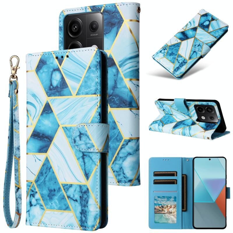 Θήκη τηλεφώνου από δέρμα με ραφή και μαρμάρινη μπρονζέ διακόσμηση για Redmi Note 13 Pro 5G Global (Μπλε)