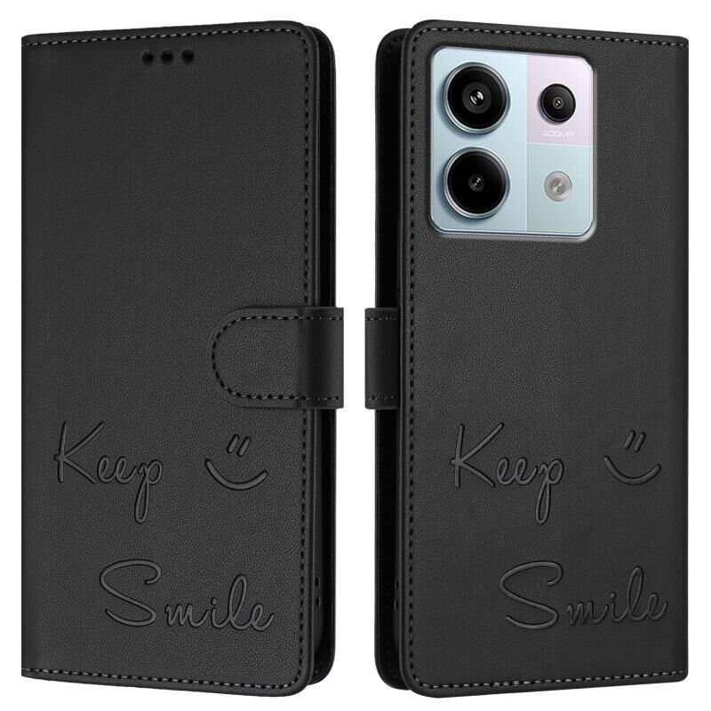 Για Redmi Σημείωση 13 Pro 5G Παγκόσμια χαμόγελο ανάγλυφο RFID δερμάτινη θήκη τηλεφώνου (Μαύρο)