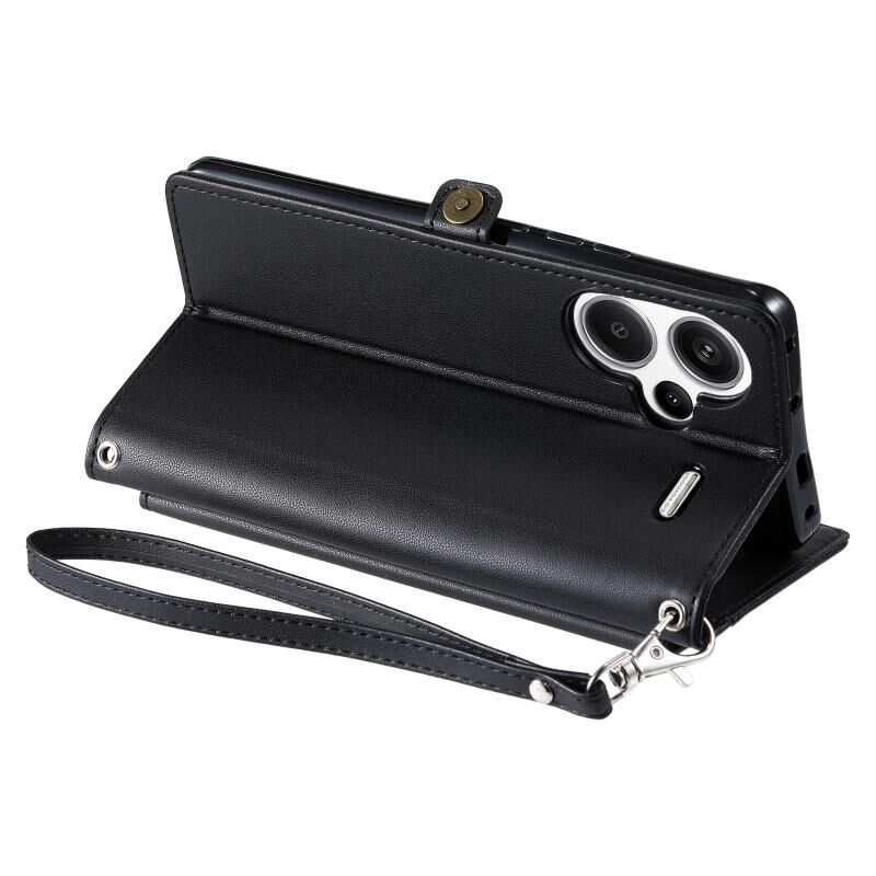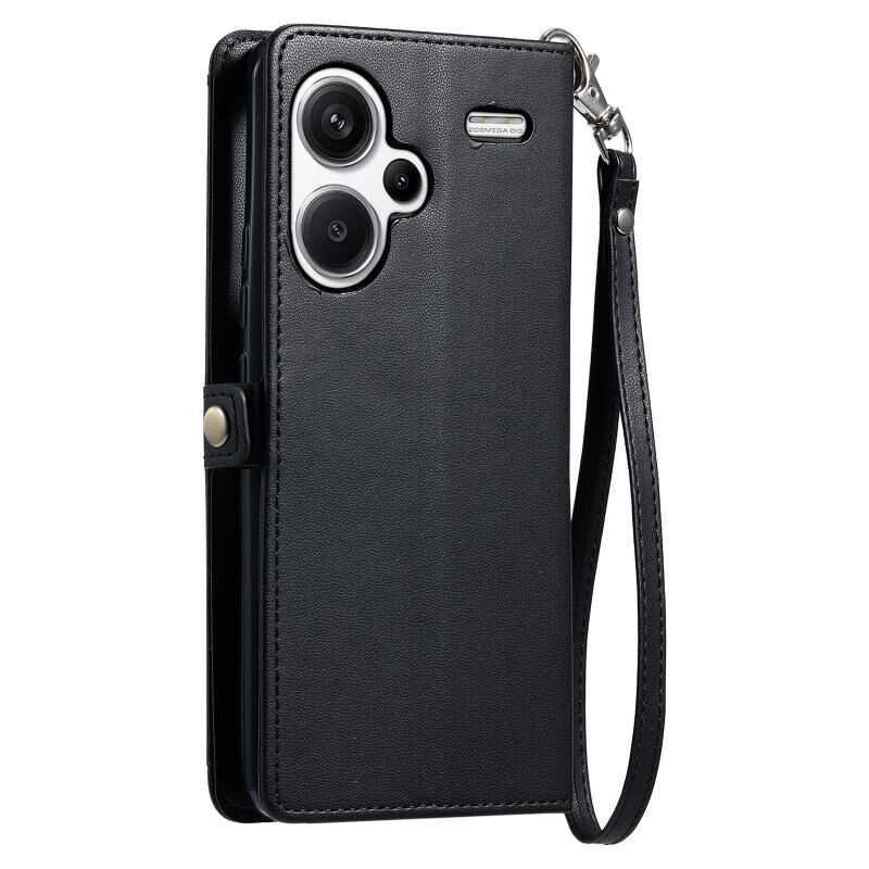 Για Redmi Note 13 Pro + 5G Παγκόσμια πορτοφόλι πολλαπλών καρτών Slot Δερμάτινη θήκη τηλεφώνου με κορδόνι (Μαύρο)