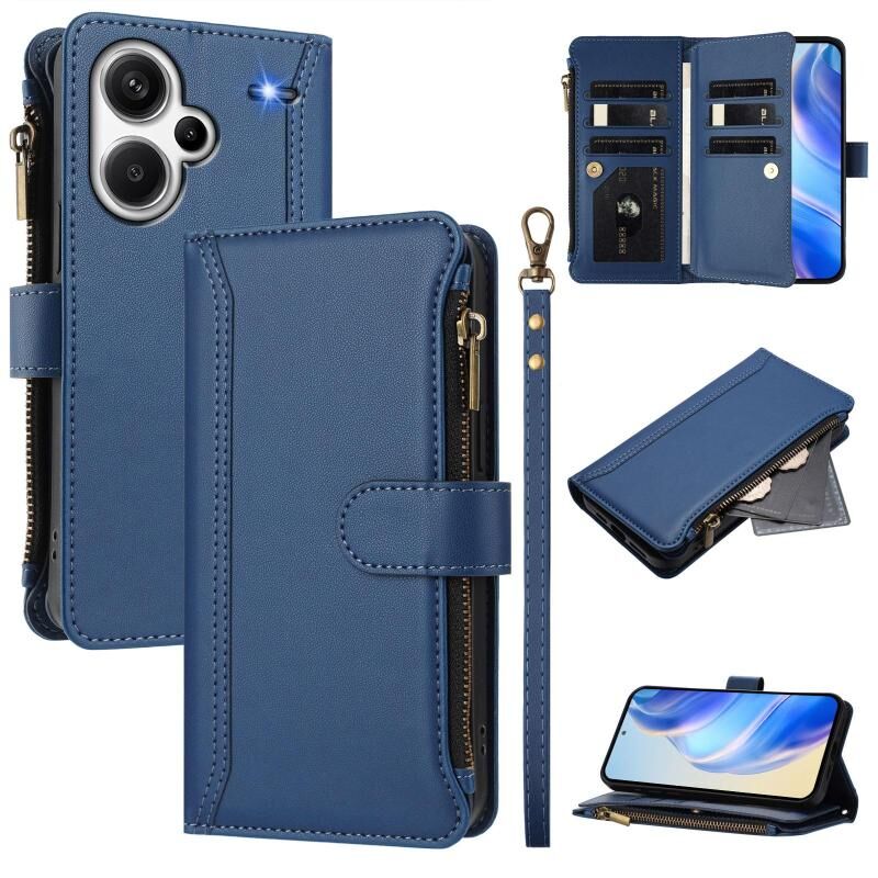 Για Redmi Note 13 Pro+ 5G Μαγνητικό Κλείσιμο 9 Θήκες Κάρτας Δερμάτινη Θήκη με Φερμουάρ και Λουρί Χεριού (Σκούρο μπλε)