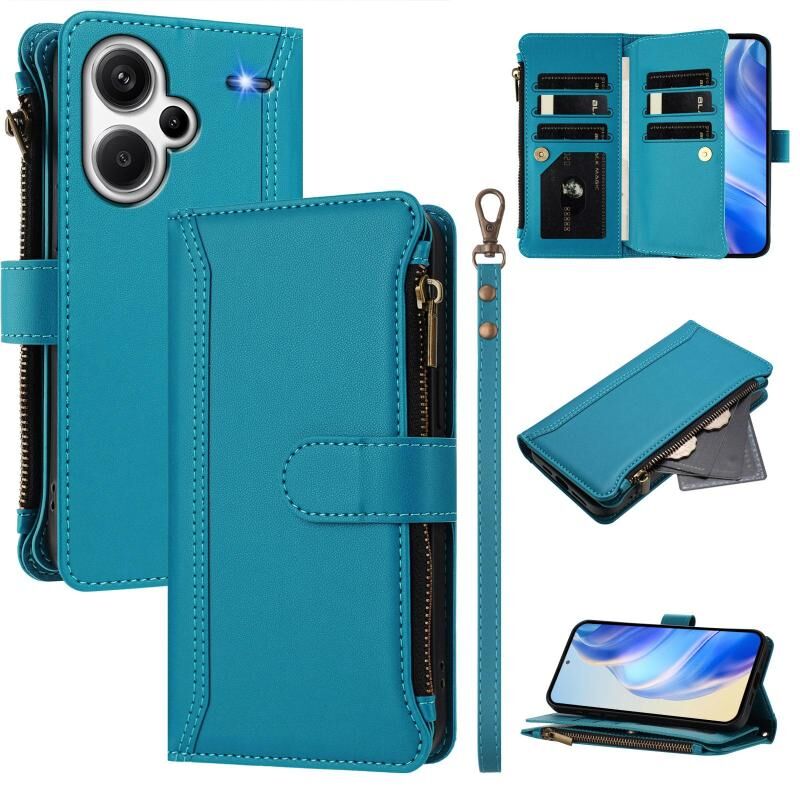 Για Redmi Note 13 Pro+ 5G Μαγνητικό Κλείσιμο 9 Θήκες Κάρτας Δερμάτινη Θήκη με Φερμουάρ και Λουρί Χεριού (Κόκκινο)