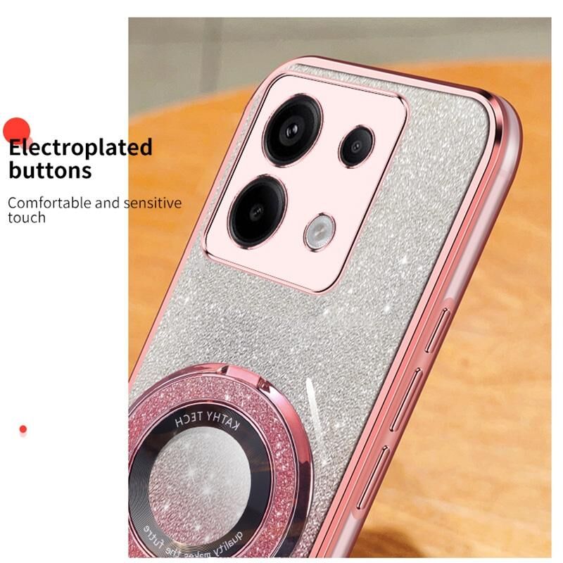 Για Redmi Σημείωση 13 Pro 5G επιμεταλλωμένο βαθμιδωτή Glitter στρογγυλή κάτοχος TPU υπόθεση τηλεφώνου (ροζ)