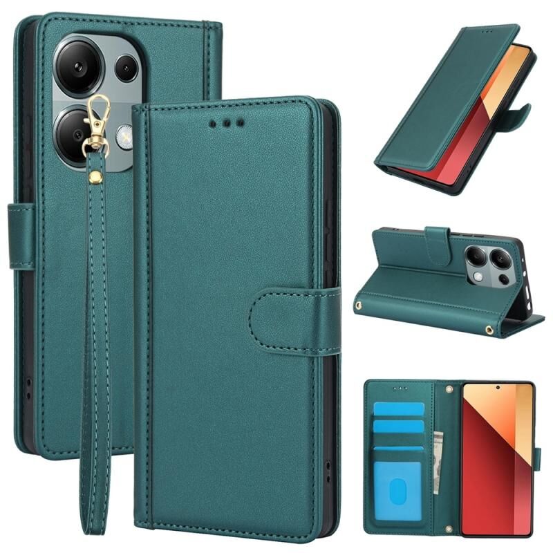 Για Redmi Note 13 Pro 5G / Poco X6 5G Παγκόσμια αίσθηση δέρματος Pure Color Card Slots δερμάτινη θήκη τηλεφώνου με διπλό κορδόνι (πράσινο)