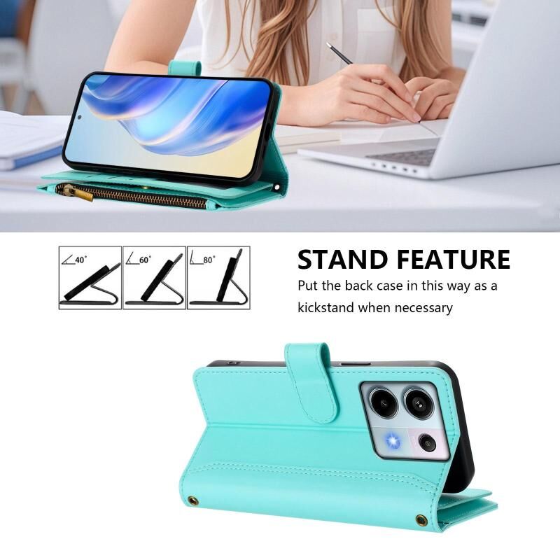 Για Redmi Note 13 Pro 5G / Poco X6 Μαγνητικό Κλείσιμο 9 Θήκες Κάρτας Δερμάτινη Θήκη με Φερμουάρ και Λουρί Χεριού (Σκούρο Μπλε)