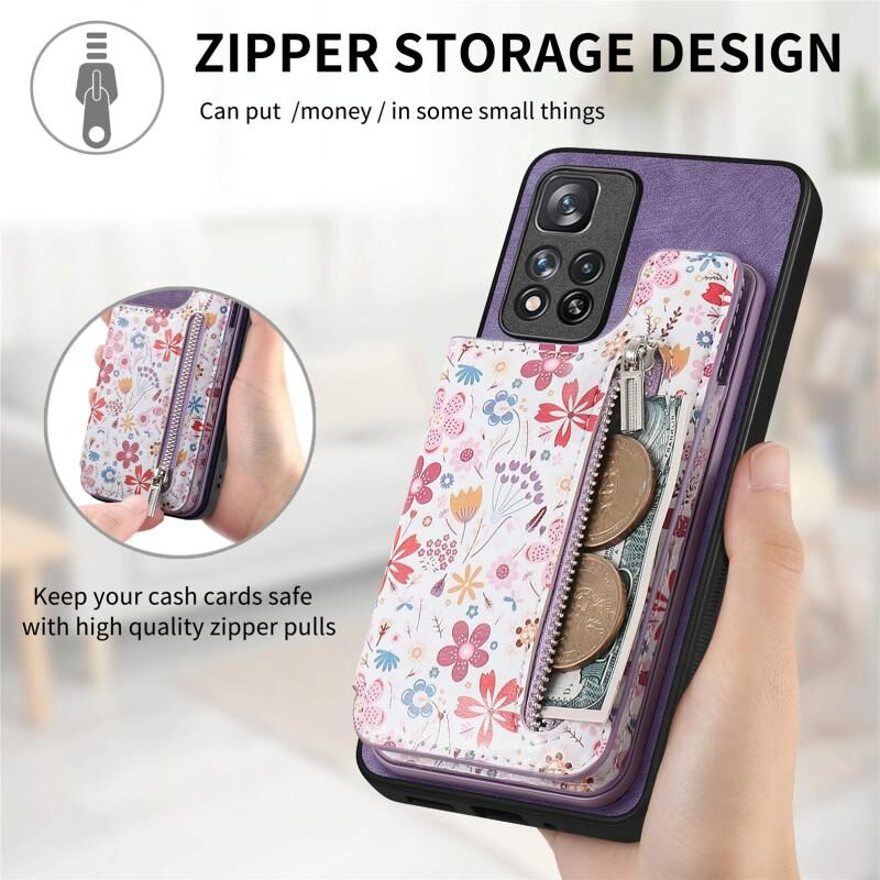 Για Redmi Note 13 Pro + 5G Ρετρό ζωγραφισμένο φερμουάρ πορτοφόλι πίσω τηλέφωνο υπόθεση (μοβ)
