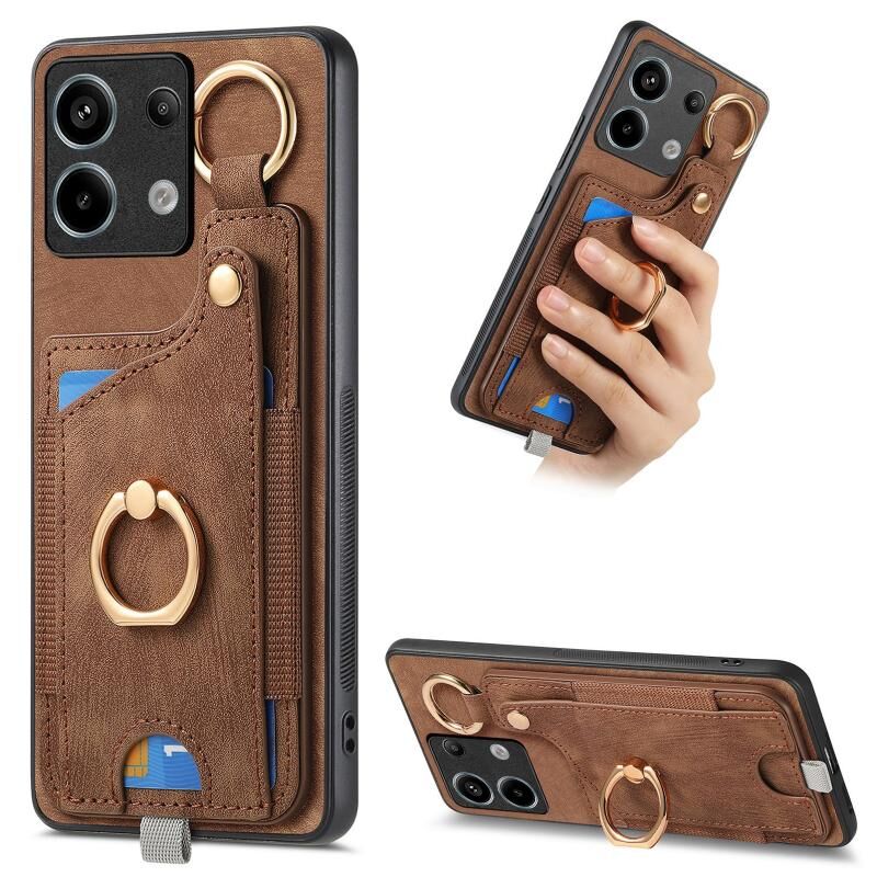 Για Redmi Note 13 Pro 5G Retro δέρμα-άισθησης δέρμα-άισθησης δαχτυλίδι τσάντα κάρτα υπόθεση τηλεφώνου με Hang Loop (καφέ)