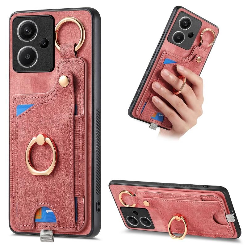 Για Redmi Note 13 Pro + 5G Ρετρό δέρμα-συναίσθημα δαχτυλίδι κάρτα τσάντα υπόθεση τηλεφώνου με Hang Loop (ροζ)