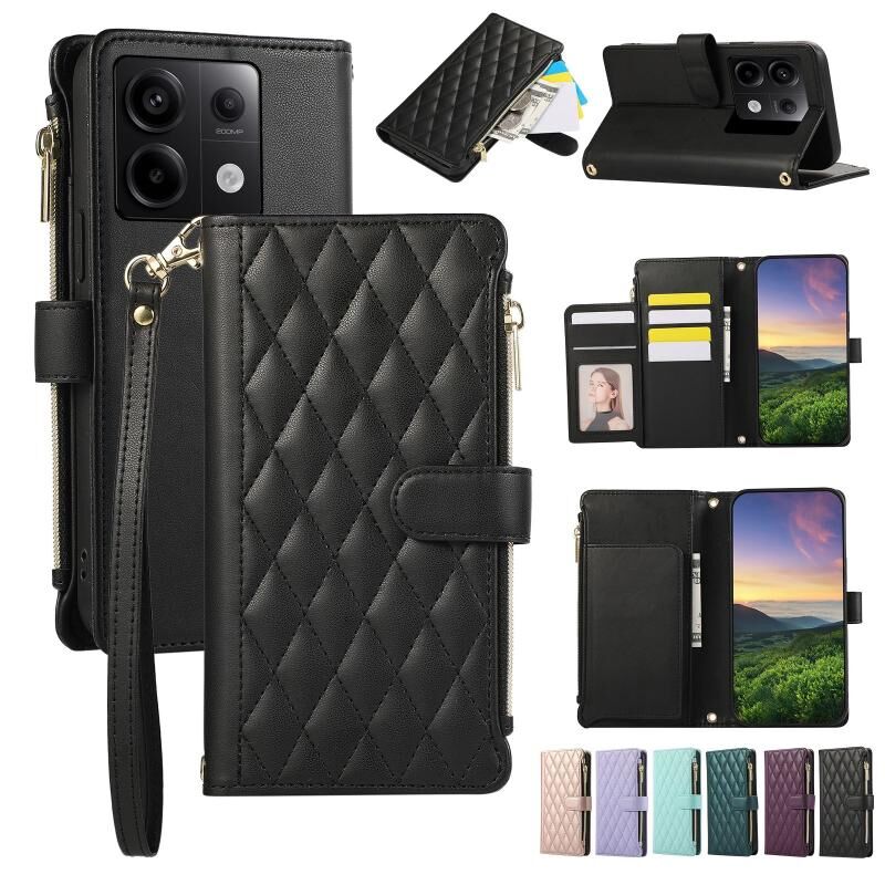 Για Redmi Note 13 Pro 5G Rhombic φερμουάρ πορτοφόλι δερμάτινη θήκη τηλεφώνου (μαύρο)