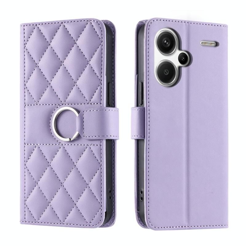 Για Redmi Note 13 Pro + 5G δαχτυλίδι πόρπη Rhombic δέρμα τηλέφωνο υπόθεση (μωβ)