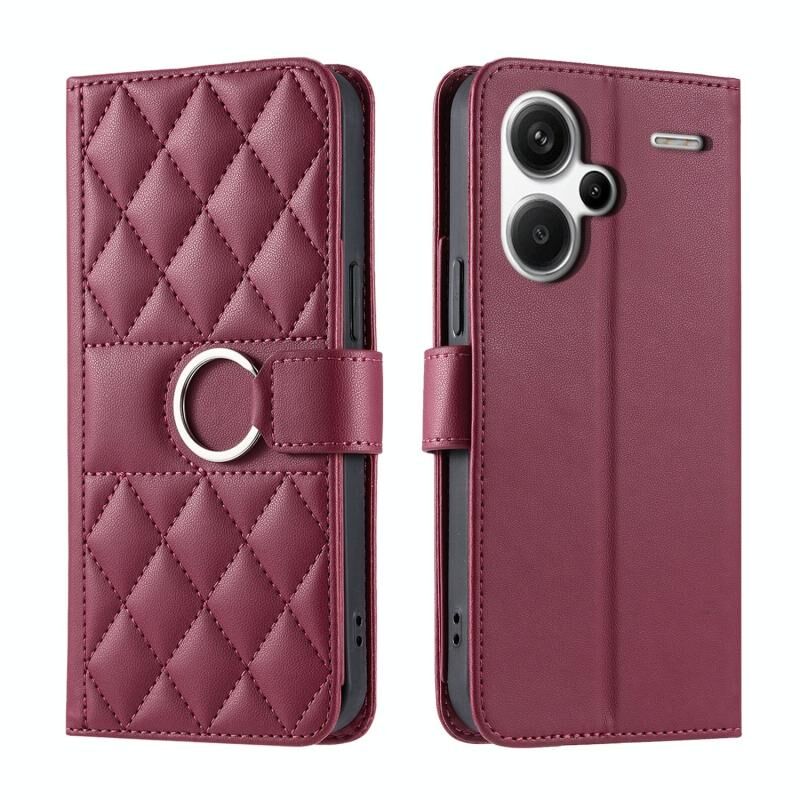 Για Redmi Note 13 Pro + 5G δαχτυλίδι πόρπη Rhombic δερμάτινη θήκη τηλεφώνου (κόκκινο)