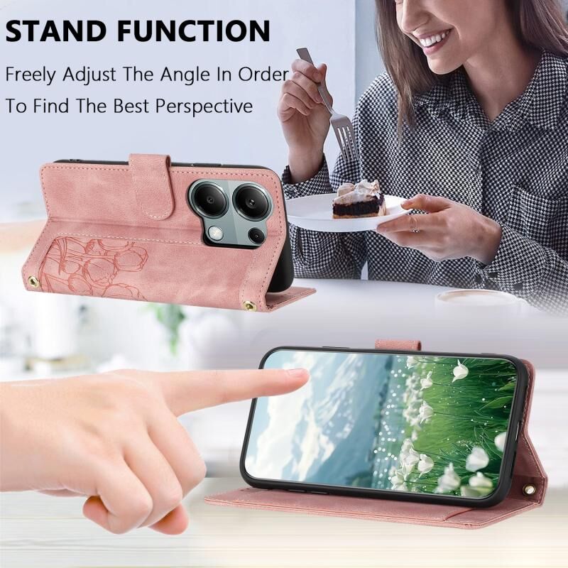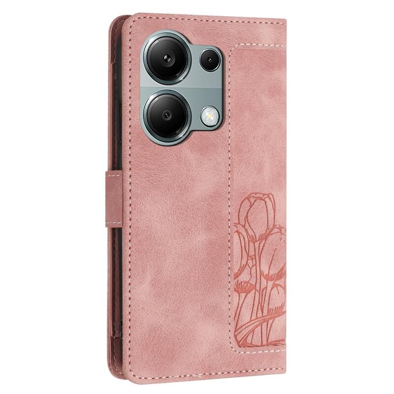 Θήκη τηλεφώνου από δέρμα με ανάγλυφα τουλίπες για Redmi Note 13 Pro 5G με κορδόνι (Ροζ)