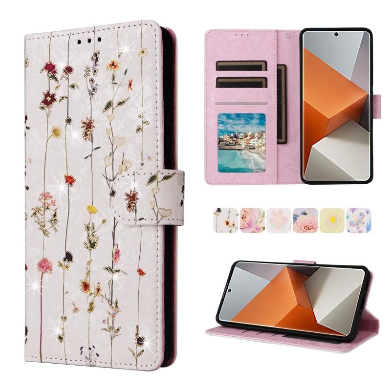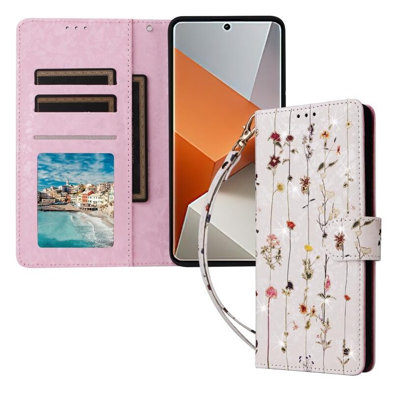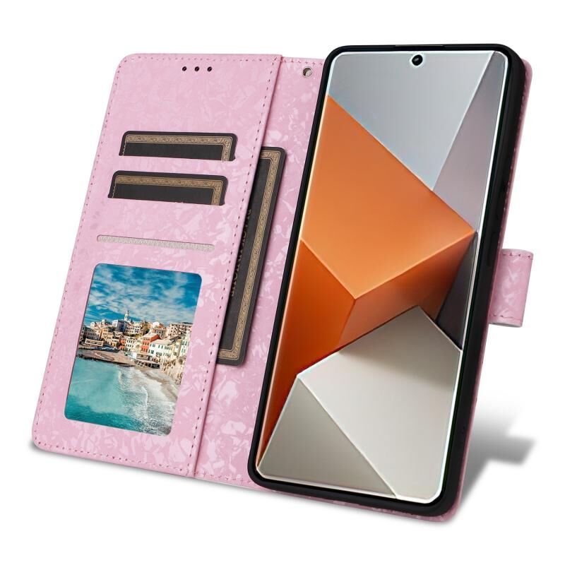 Θήκη τηλεφώνου από δέρμα με τεχνολογία RFID και ανάγλυφο σχέδιο (Flowers World) για Redmi Note 13 Pro+