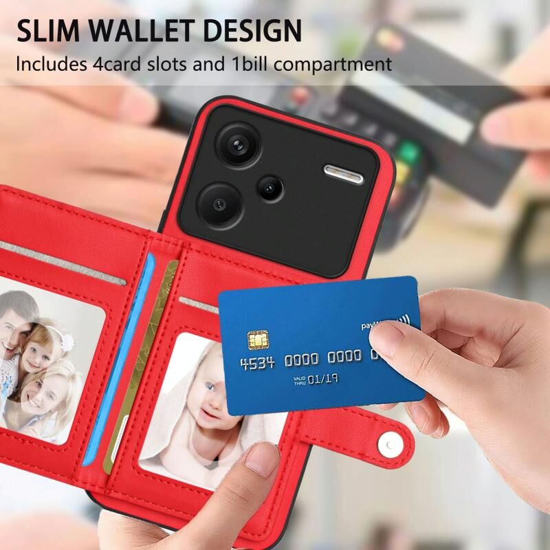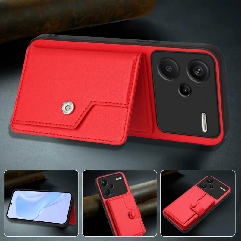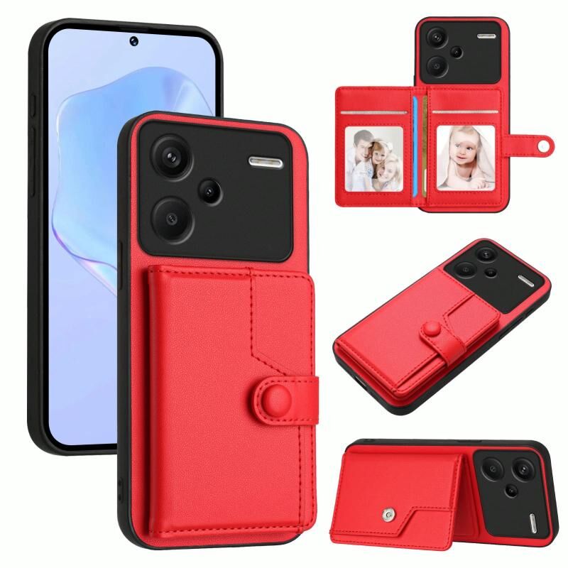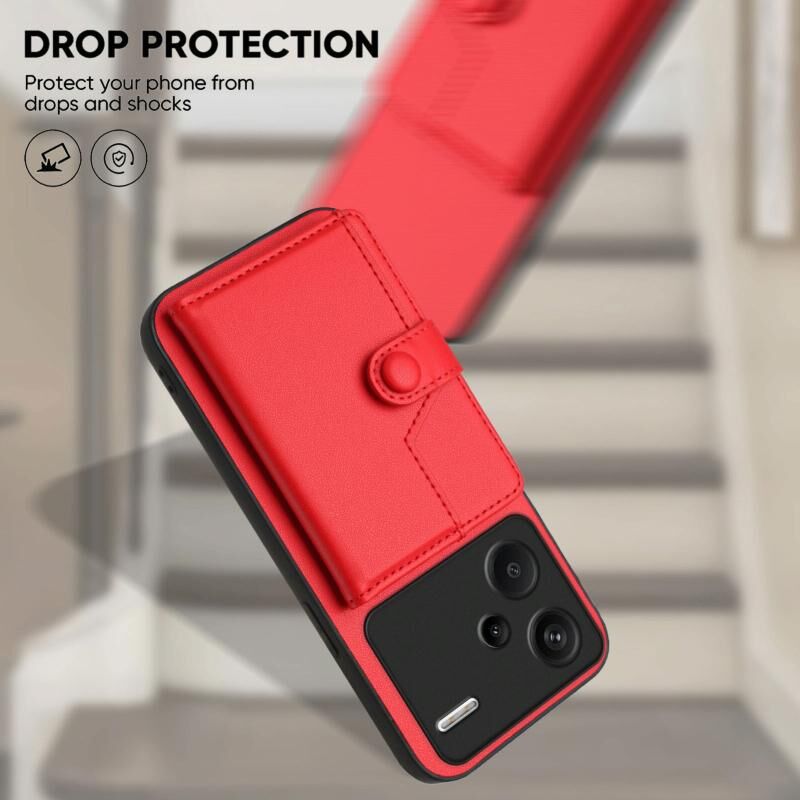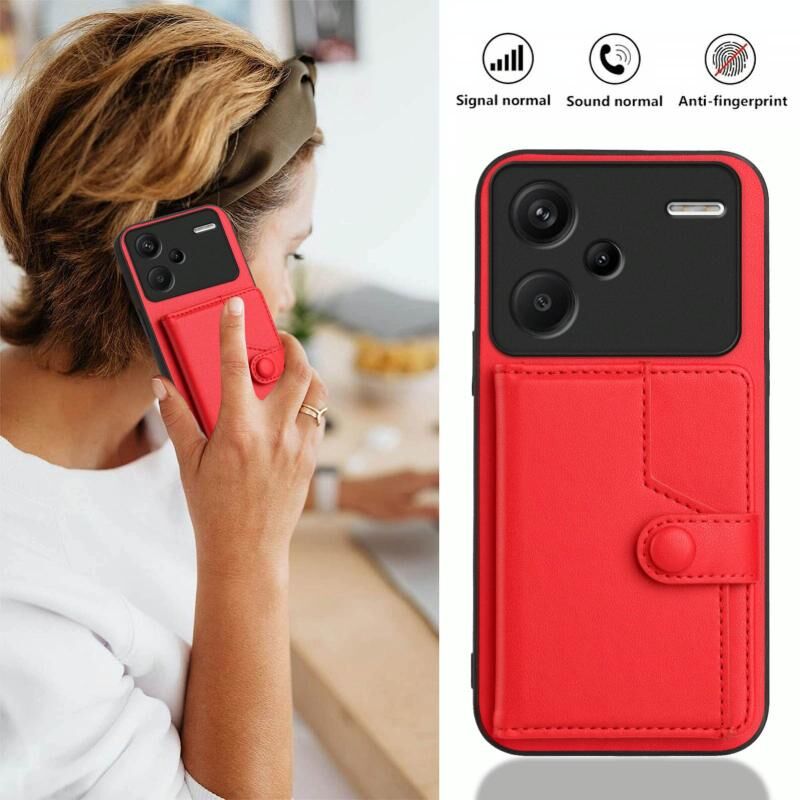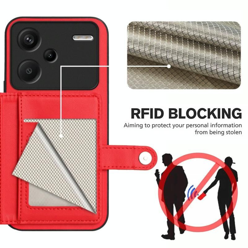 Για Redmi Σημείωση 13 Pro + κουμπί κάρτα τσάντα RFID Anti-theft τηλέφωνο υπόθεση (κόκκινο)