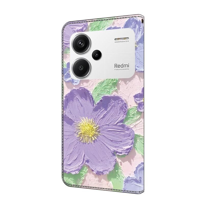 Θήκη τηλεφώνου από φρέσκο ​​βαμμένο δέρμα για Redmi Note 13 Pro+ (Μωβ λουλούδια ζωγραφικής με λάδι)