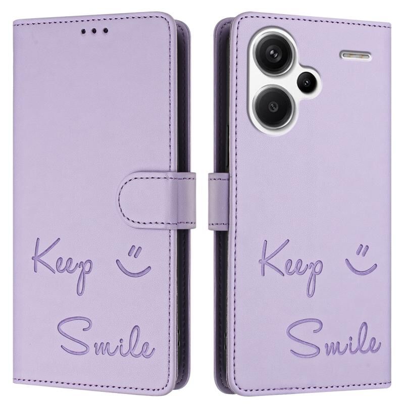 Για Redmi Σημείωση 13 Pro + Παγκόσμια χαμόγελο ανάγλυφο RFID δερμάτινη θήκη τηλεφώνου (Light Purple)