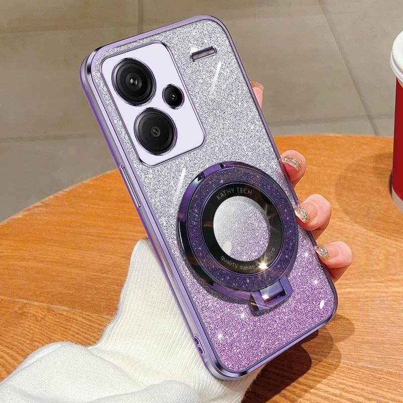 Για Redmi Note 13 Pro + Επιμεταλλωμένο διαβάθμιση Glitter στρογγυλό κάτοχος TPU υπόθεση τηλεφώνου (μωβ)