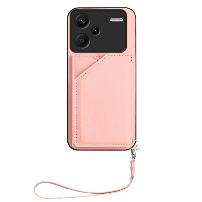 Για Redmi Σημείωση 13 Pro + δέρμα αίσθηση τέσσερις υποδοχές καρτών τηλέφωνο υπόθεση με λουράκι καρπού (ροζ)