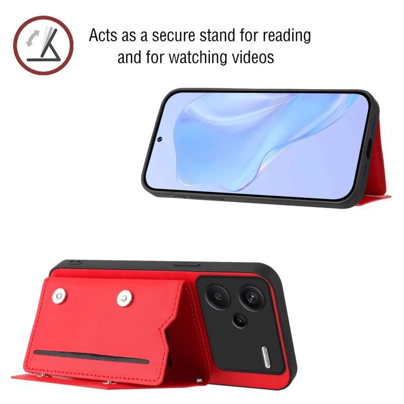 Για Redmi Note 13 Pro + δέρμα αίσθηση τέσσερις υποδοχές καρτών υπόθεση τηλεφώνου με λουράκι καρπού (κόκκινο)