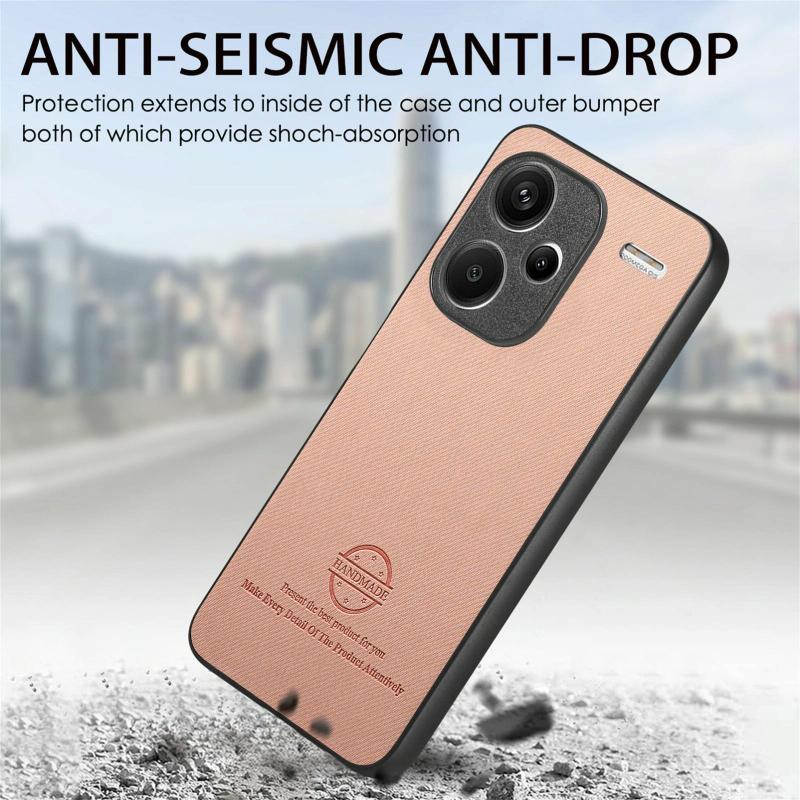 For Redmi Note 13 Pro+ Twill Fabric Leather Skin Back Phone Case(Pink)